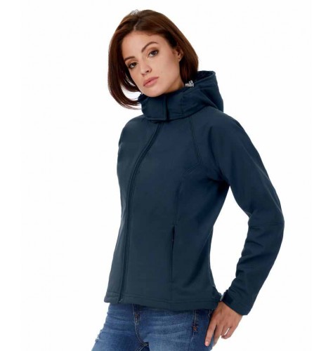 Ženska softshell jakna s kapuco B&C Hooded. Ta model je dobavljiv tudi v moški/unisex izvedbi.