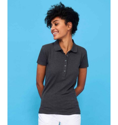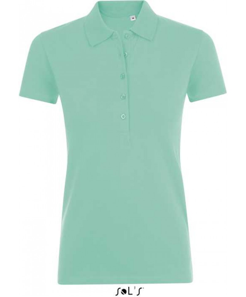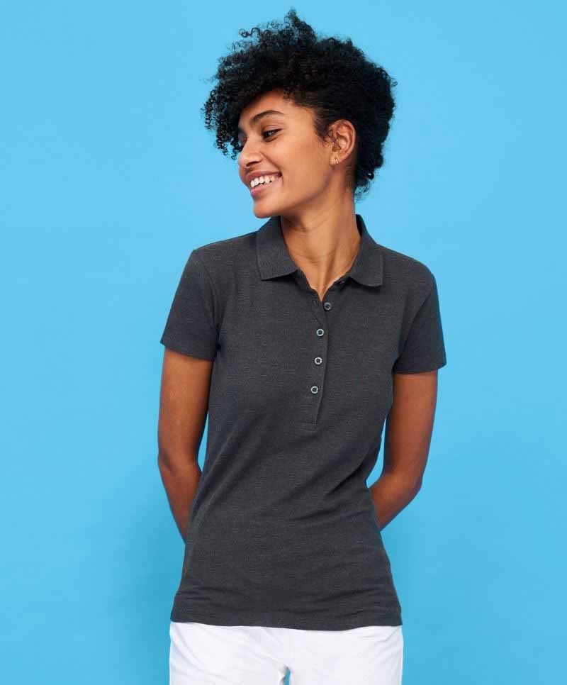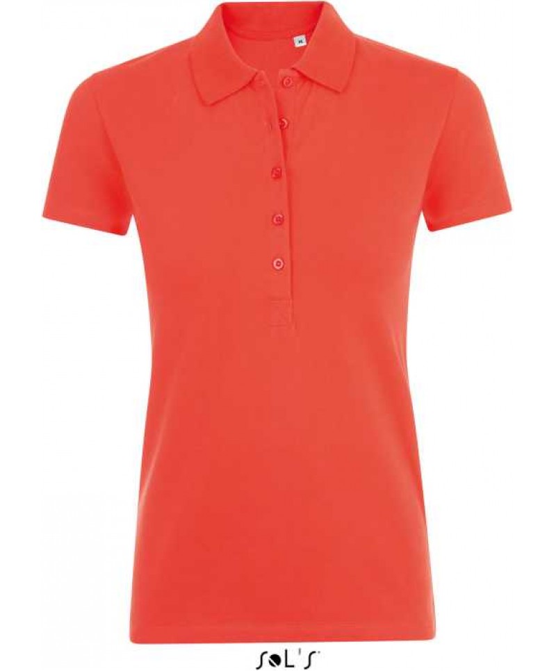 Zelo kvalitetna ženska oprijeta polo majica s kratkimi rokavi Sol's Phoenix iz mešanice bombaž elastan. Ta model je dobavljiv tudi v moški različici.