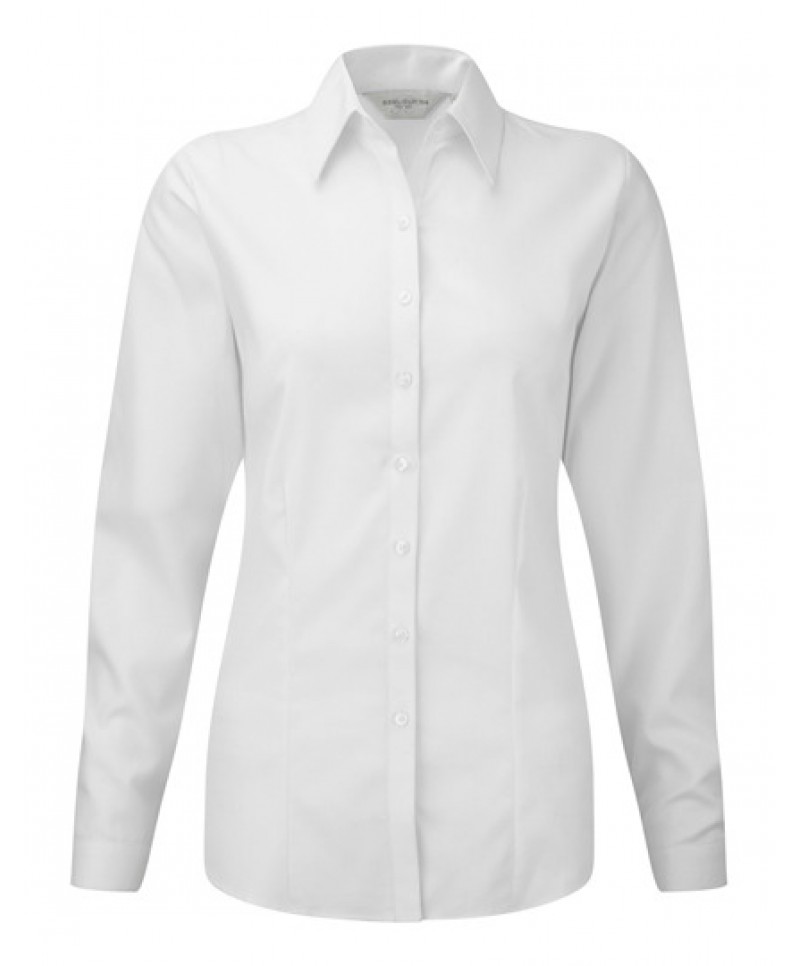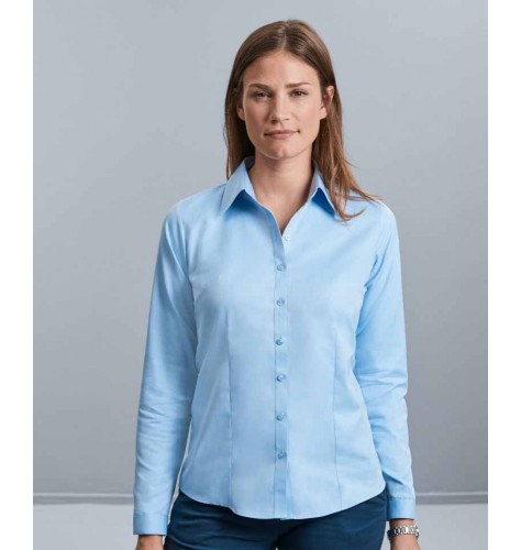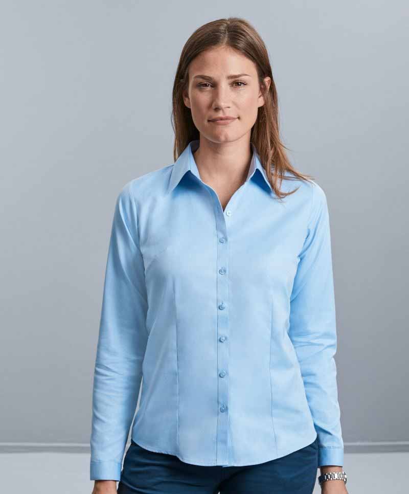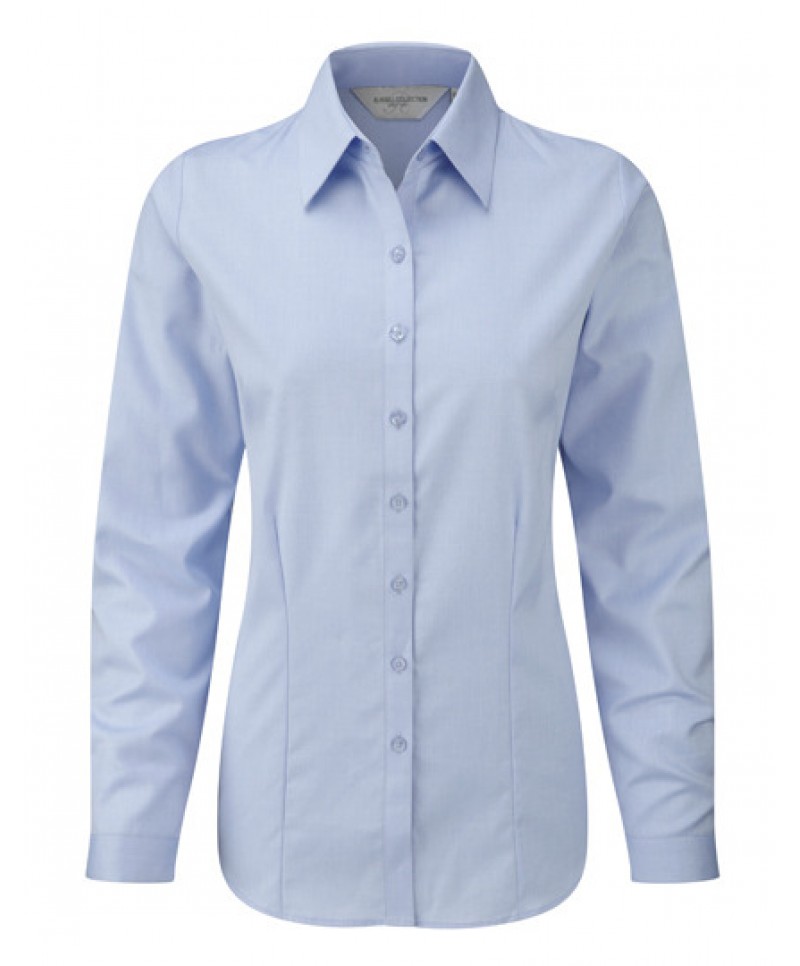 Ženska srajca s krtkimi rokavi Russell R962F Herringbone. Ta model je dobavljiv tudi s kratkimi rokavi in v moški izvedbi.